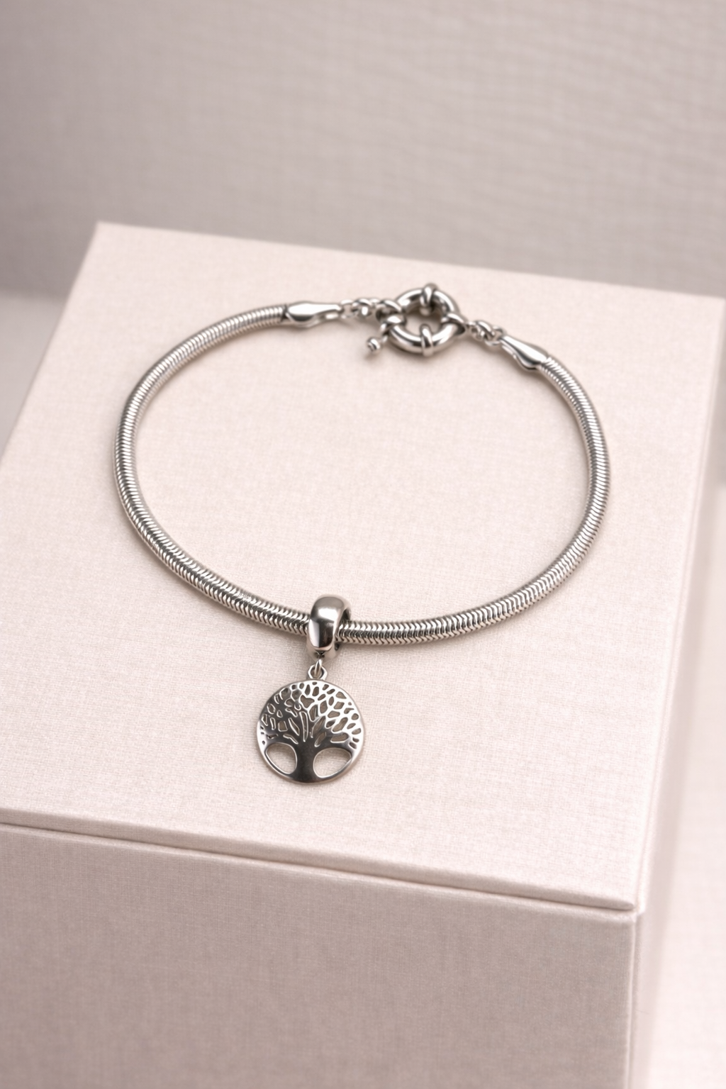 Símbolo de conexão e equilíbrio, o Berloque Árvore da Vida representa as raízes que sustentam e os ramos que crescem rumo ao novo. Um amuleto de força e prosperidade, com design rico em detalhes e brilho sereno.
