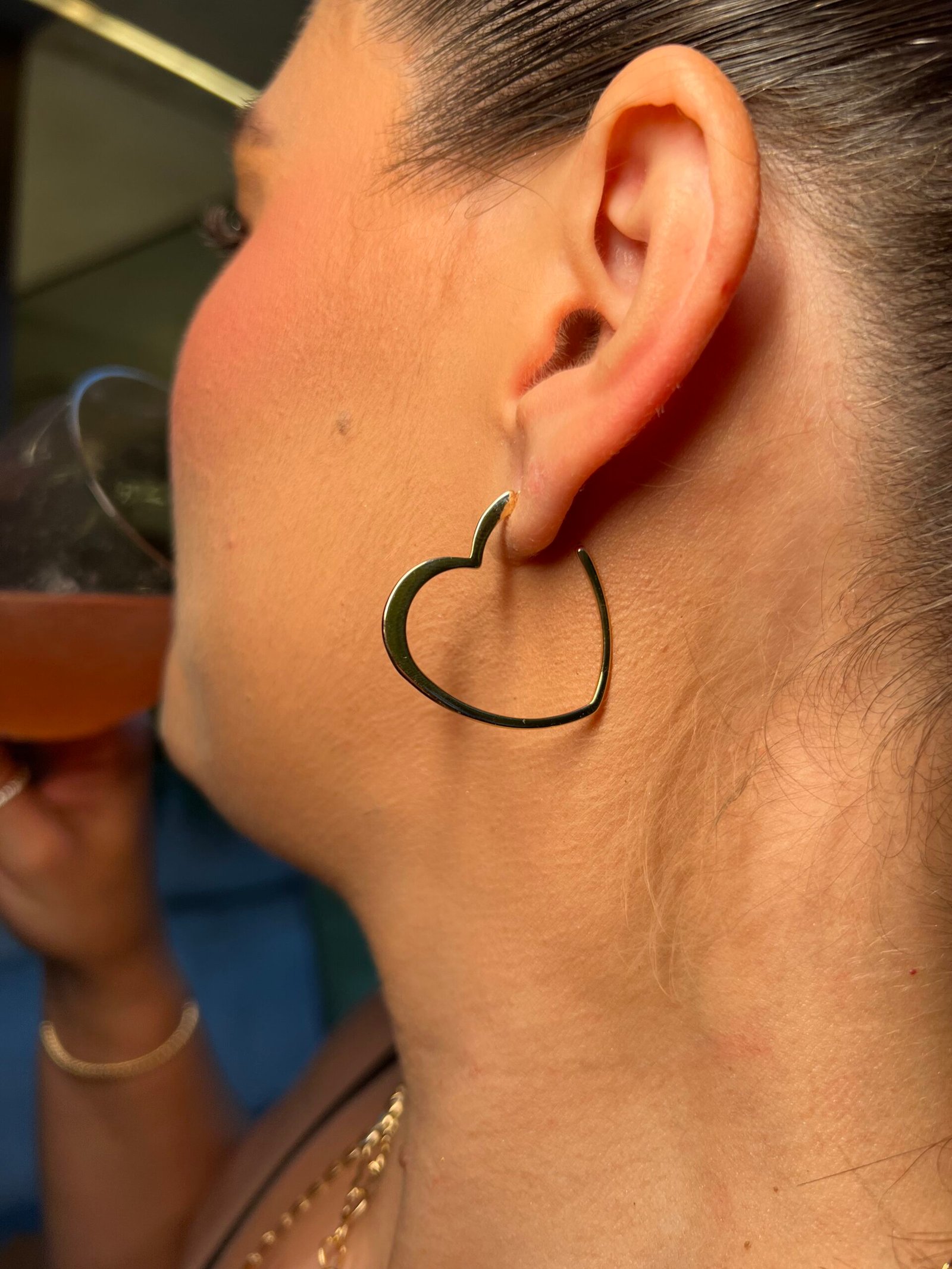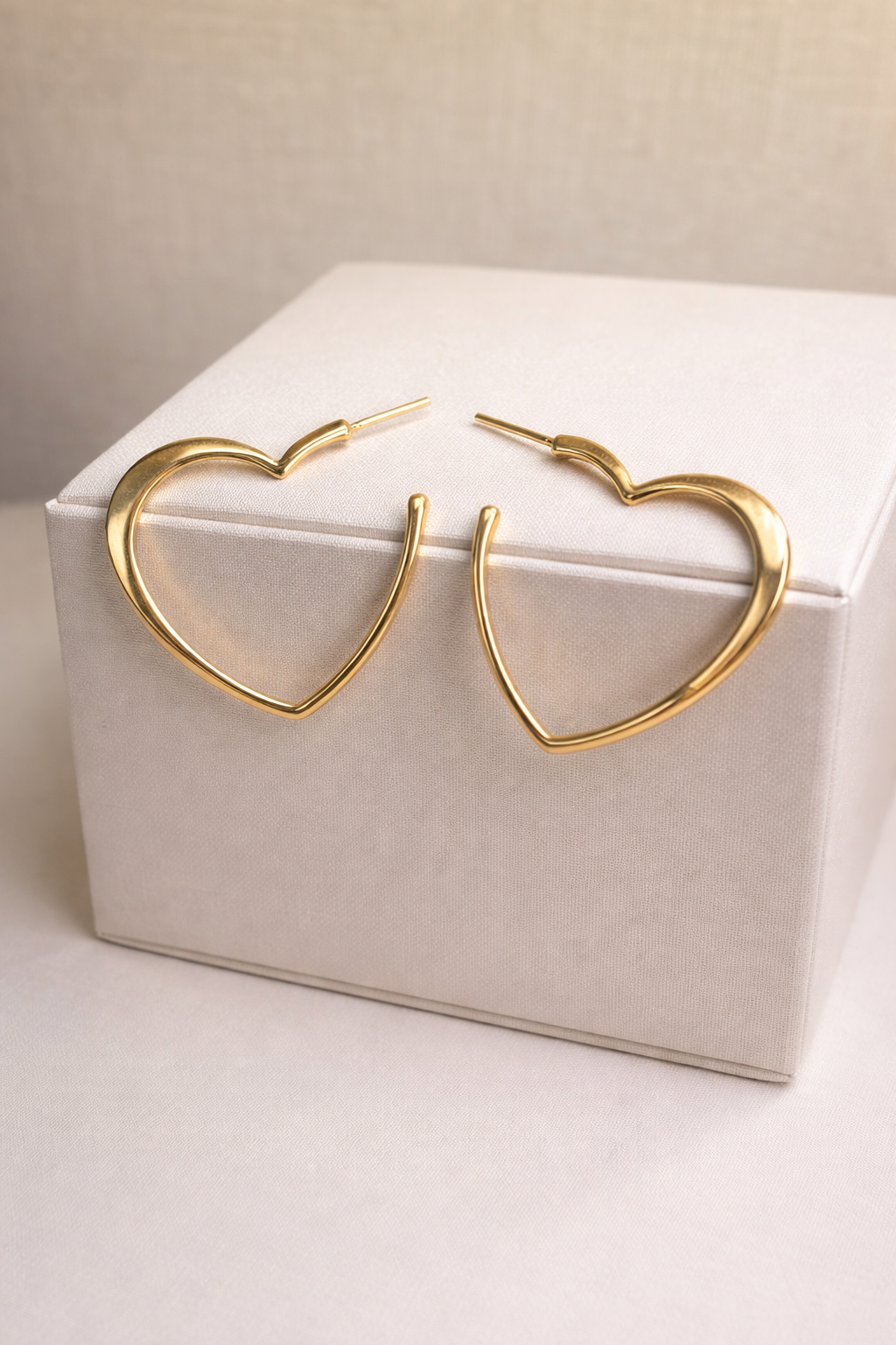 Um encontro entre romantismo e modernidade. O brinco em formato de coração apresenta linhas orgânicas e assimétricas, que reinterpretam o símbolo do amor de forma artística e atual. O metal polido reflete a luz com suavidade, criando um brilho sofisticado que acompanha o movimento do corpo. Ideal para quem busca uma expressão delicada, mas marcante, de feminilidade e estilo.