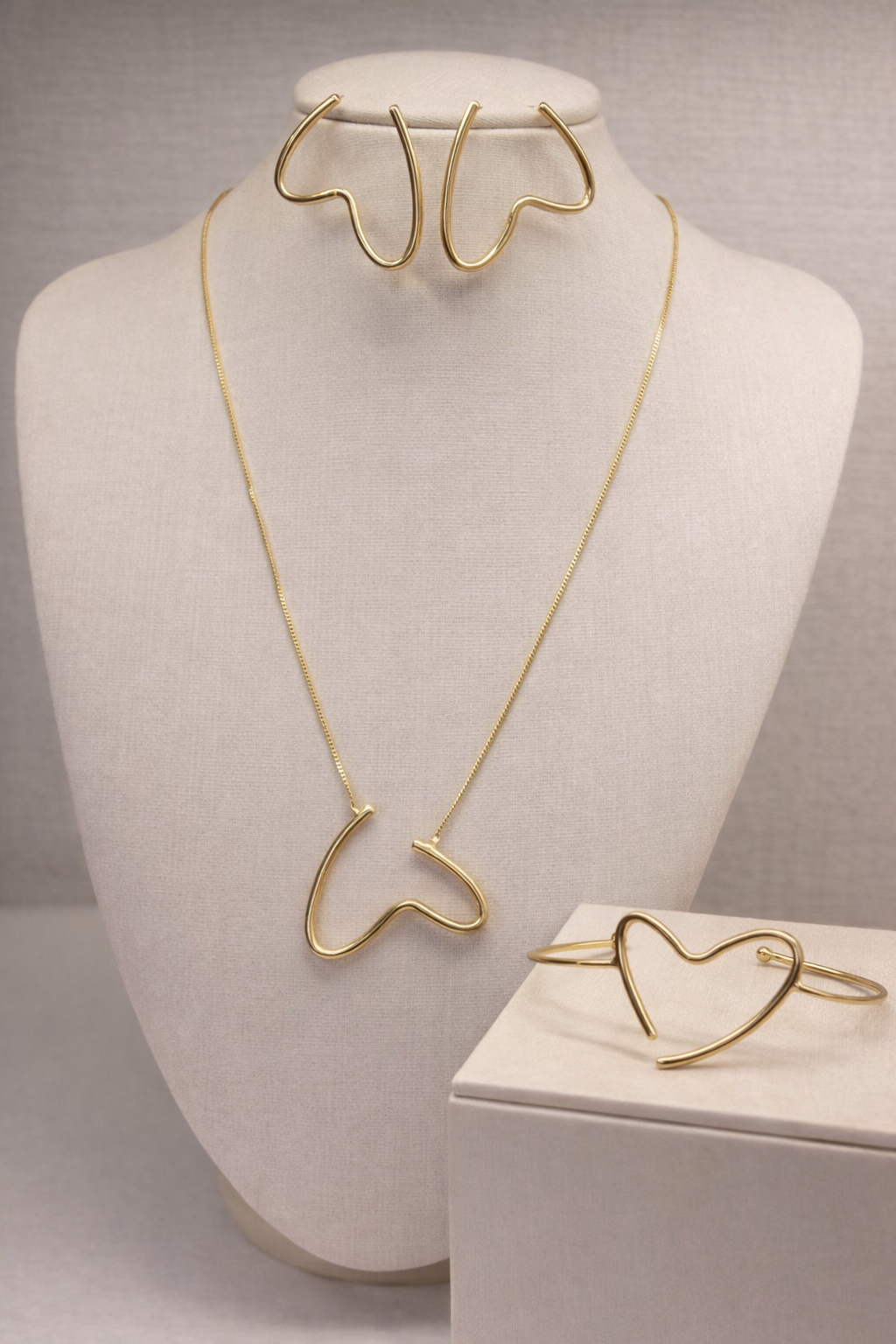 Um encontro entre romantismo e modernidade. O brinco em formato de coração apresenta linhas orgânicas e assimétricas, que reinterpretam o símbolo do amor de forma artística e atual. O metal polido reflete a luz com suavidade, criando um brilho sofisticado que acompanha o movimento do corpo. Ideal para quem busca uma expressão delicada, mas marcante, de feminilidade e estilo.