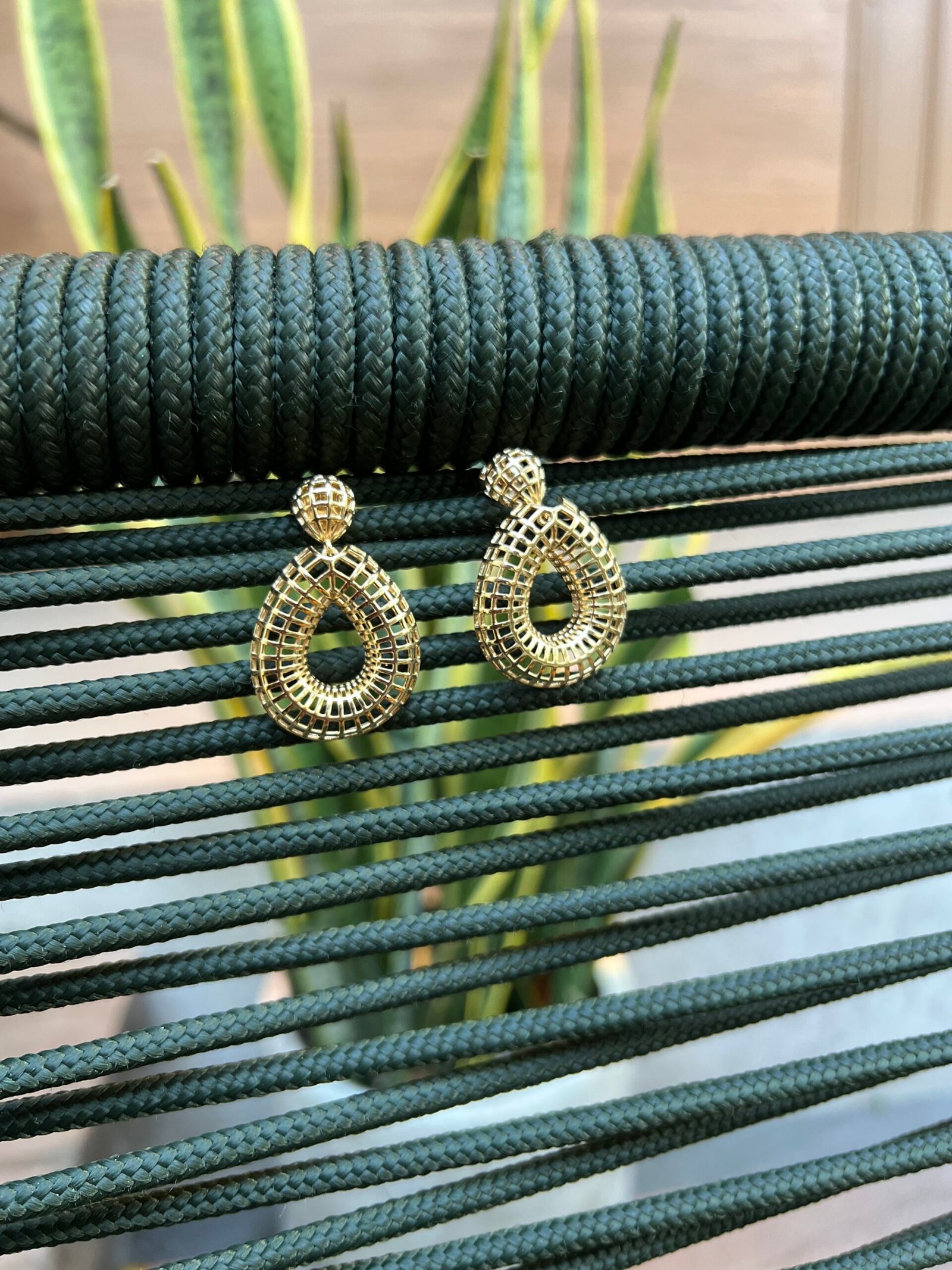 Inspirados na forma da água e no brilho da luz. Os brincos dourados em formato de gota apresentam fileiras de zircônias que criam profundidade e luminosidade. Uma peça atemporal e sofisticada, que irradia elegância em qualquer ocasião.