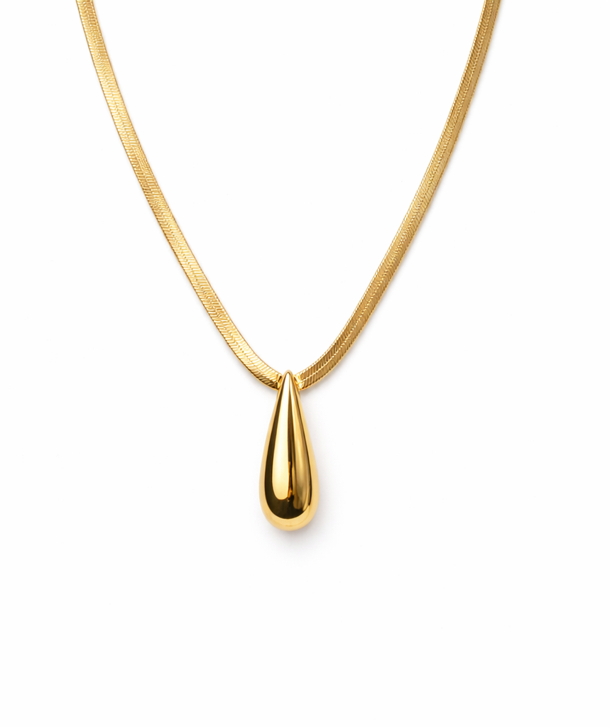 Um traço de pureza em forma de joia. O colar em banho dourado traz uma delicada gota que parece fluir pela pele, como se tivesse sido moldada pela própria luz. Seu design orgânico e minimalista transmite elegância sem esforço, ideal para quem busca sofisticação com sutileza. Uma peça que se destaca tanto sozinha quanto em camadas discretas, revelando a beleza da simplicidade.