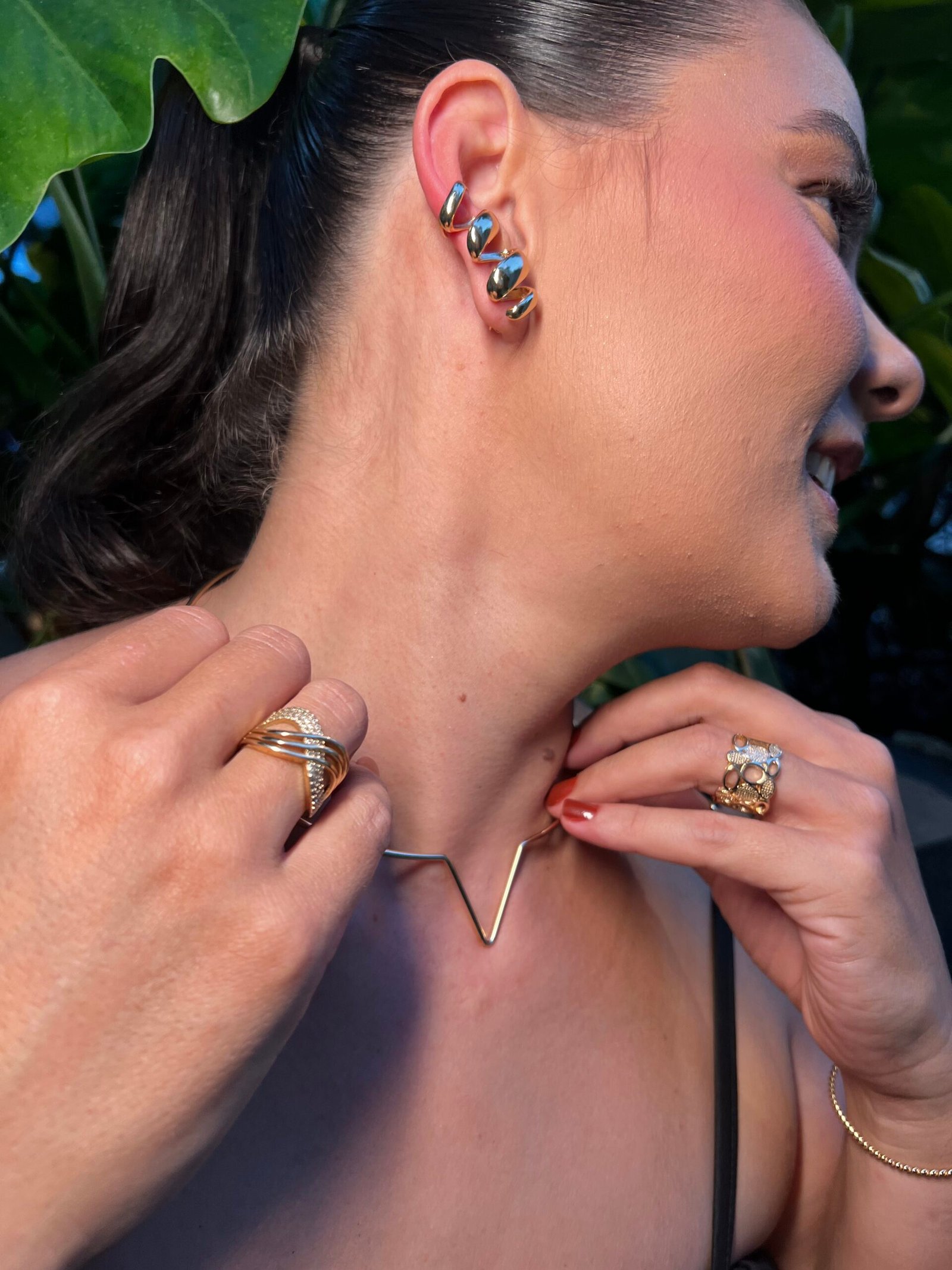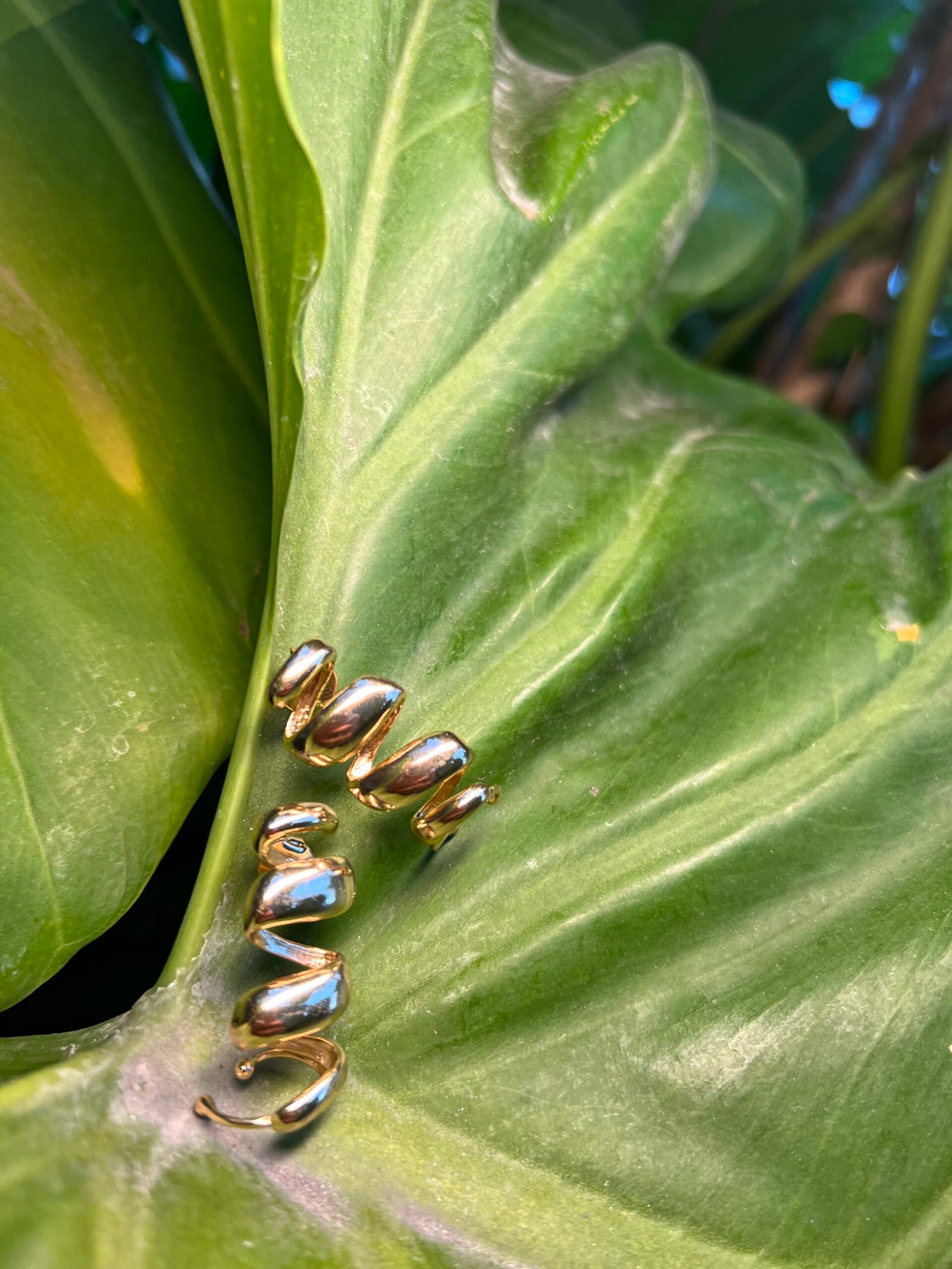 Um toque de ousadia envolto em elegância. Os brincos trazem o movimento de uma espiral dourada, símbolo de energia e renovação. O design volumoso e o brilho intenso transformam qualquer look com modernidade e poder.